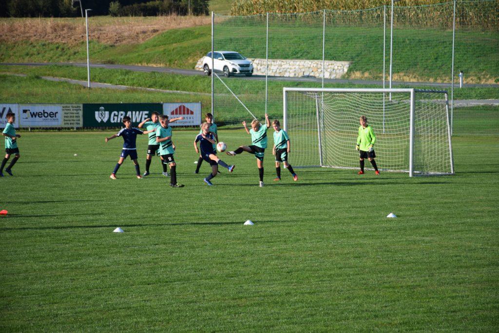 Danes je naša ekipa U13 odigrala tretjo prvenstveno tekmo, na Grajeni. V odličnih pogojih za igro so naši začeli odločno in takoj pritisnili na nasprotnikov gol. Sledilo je nekaj napadov brez priložnosti, nato pa je na sceno stopil Gal in odločno prodrl po boku. Preigral je dva domača igralca in lepo zadel v zgornji vratarjev kot. Sledil je še odločnejši napad na gol nasprotnika in rezultat le tega so bili še tri žoge v mreži Grajene. V prvem polčasu so si domači priigrali le eno zrelo priložnost, a je bil naš vratar uspešnejši od napadalca domačinov.