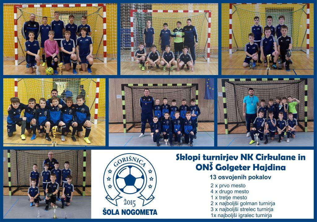 V tem zimskem času smo sodelovali na 22 turnirjih posameznih selekcij. Udeleževali smo se turnirjev v Sloveniji, Hrvaški in Avstriji. Skupaj so naše ekipe osvojile neverjetnih 18 pokalov (7 x prvo mesto, 5 x drugo mesto, 6 x tretje mesto), prav tako smo osvojili še 6 posameznih pokalov (2 x najboljši vratar turnirja, 3 x najboljši strelec turnirja in 1 x najboljši igralec turnirja). Skupaj torej kar 24 pokalov. Res neverjetna statistika za našo Šolo nogometa. Upamo, da so ali bodo te rezultate opazili tudi tisti, ki imajo v rokah škarje in platno ter s tem finančno moč vlaganja v šport. Mi v Šoli nogometa Gorišnica pa smo tukaj zato, da te mlade fante in dekleta naučimo prvin nogometne igre, samodiscipline, spoštovanja drugih ter ekipnega duha.